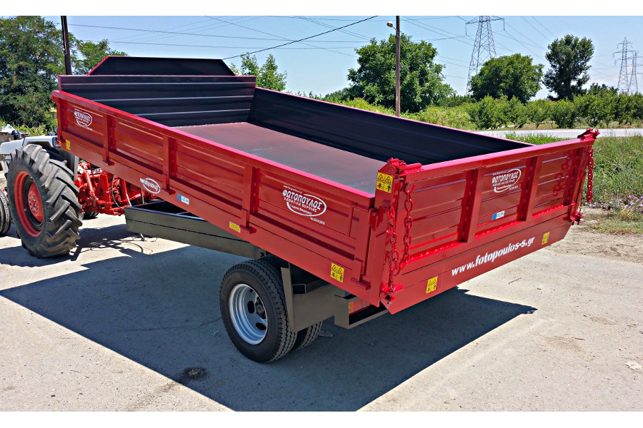 Πλατφόρμα μονοαξονική με ανατροπή για 5500 κιλά. Καρότσες ανατρεπόμενες με μονό άξονα χαμηλές και ευέλικτες. Ρυμούλκα για τρακτέρ που ελίσσεται με ευκολία και εξυπηρετεί όλων των ειδών τα φορτία που θέλουμε να μεταφέρουμε.